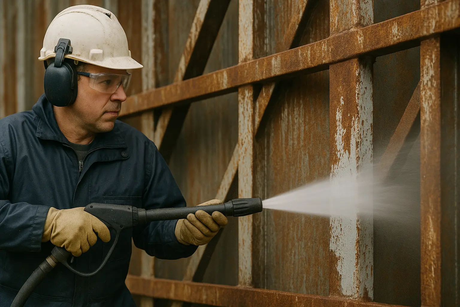 Otra opción eficaz es la limpieza con chorro para decapado, que utiliza abrasivos seleccionados como microesferas, granalla o arena, aplicados con presión controlada. Esta técnica ofrece alta efectividad y un acabado homogéneo, incluso en zonas de difícil acceso, especialmente cuando se emplean equipos de limpieza con chorro de agua a alta presión para decapado industrial.